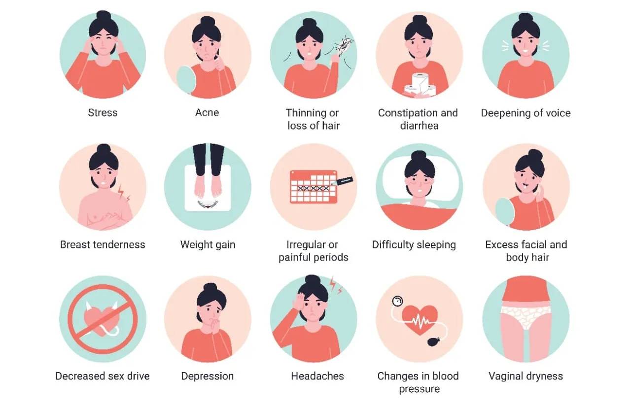 Simptomi so pogosto raznoliki in se lahko kažejo tako na fizični, kot na čustveni in reproduktivni ravni: